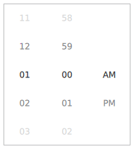 import QtQuick import QtQuick.Window import QtQuick.Controls Rectangle { width: frame.implicitWidth + 10 height: frame.implicitHeight + 10 function formatText(count, modelData) { var data = count === 12 ? modelData + 1 : modelData; return data.toString().length < 2 ? "0" + data : data; } FontMetrics { id: fontMetrics } Component { id: delegateComponent Label { text: formatText(Tumbler.tumbler.count, modelData) opacity: 1.0 - Math.abs(Tumbler.displacement) / (Tumbler.tumbler.visibleItemCount / 2) horizontalAlignment: Text.AlignHCenter verticalAlignment: Text.AlignVCenter font.pixelSize: fontMetrics.font.pixelSize * 1.25 } } Frame { id: frame padding: 0 anchors.centerIn: parent Row { id: row Tumbler { id: hoursTumbler model: 12 delegate: delegateComponent } Tumbler { id: minutesTumbler model: 60 delegate: delegateComponent } Tumbler { id: amPmTumbler model: ["AM", "PM"] delegate: delegateComponent } } } }