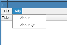 The about() function displays a QMessageBox with a brief description of the example, or general information about Qt and the version of it in use.