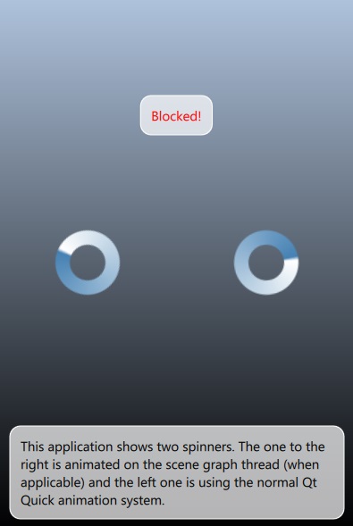 Shows benefits of custom items animating independently of the main thread while using the threaded render loop of Qt Quick.